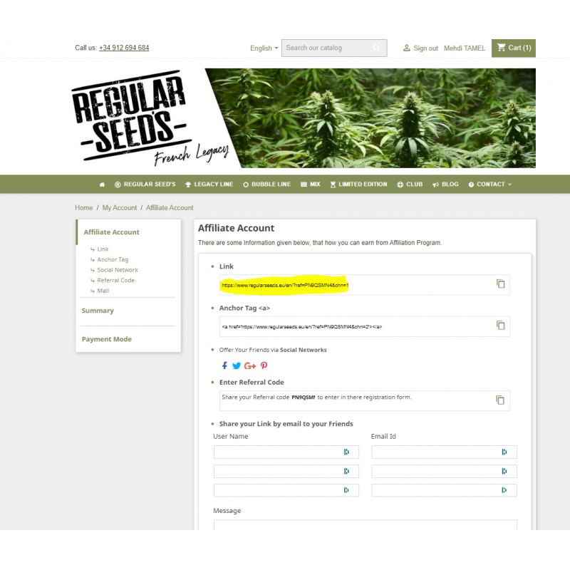 - Share it to your followers: Visitors click from your referral link to regularseeds.eu and purchase our regular cannabis seeds